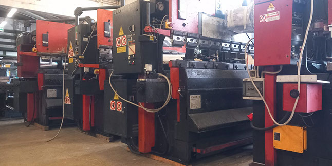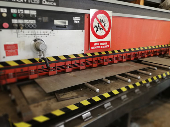 taglio a cesoia fino a 3000 mm fino ad un massimo di 6 mm di spessore, tranciatura scantonatura e punzonatura