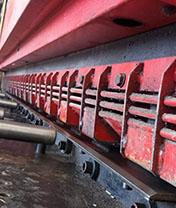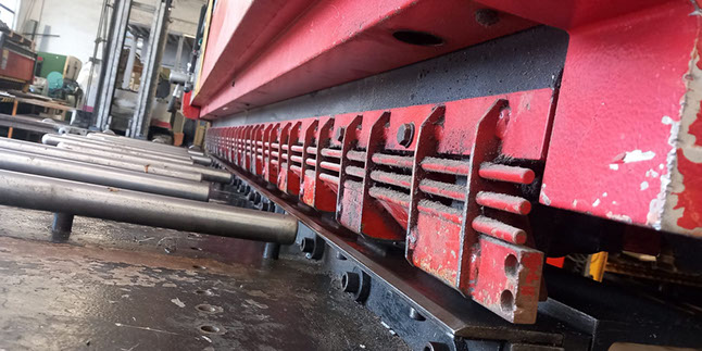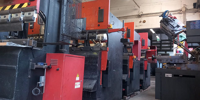 taglio a cesoia fino a 3000 mm fino ad un massimo di 6 mm di spessore, tranciatura scantonatura e punzonatura